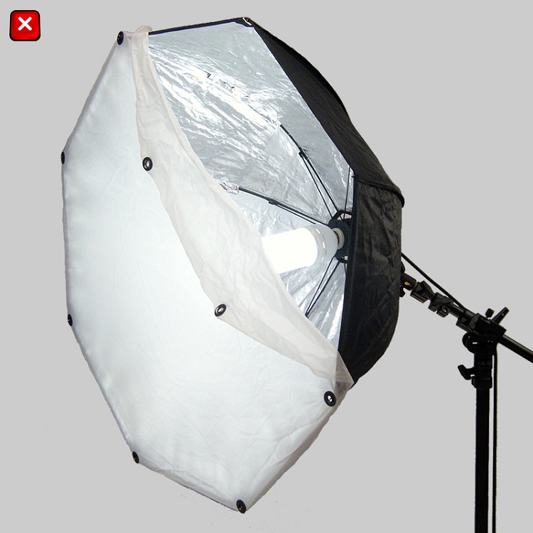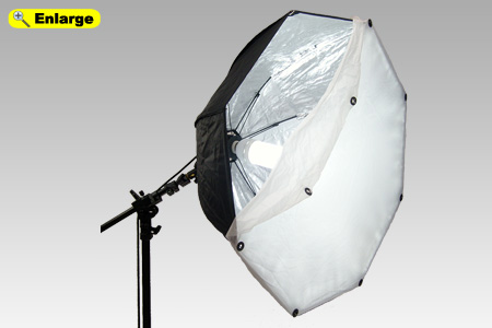 This umbrella based softbox design is sized for a majority of imaging subjects. Pictured left is the Octagonal shape perfect for portraits following the idea that the softbox shape should generally conform to the shape of the subject. Use with a mirrored reflector for excellent results. |